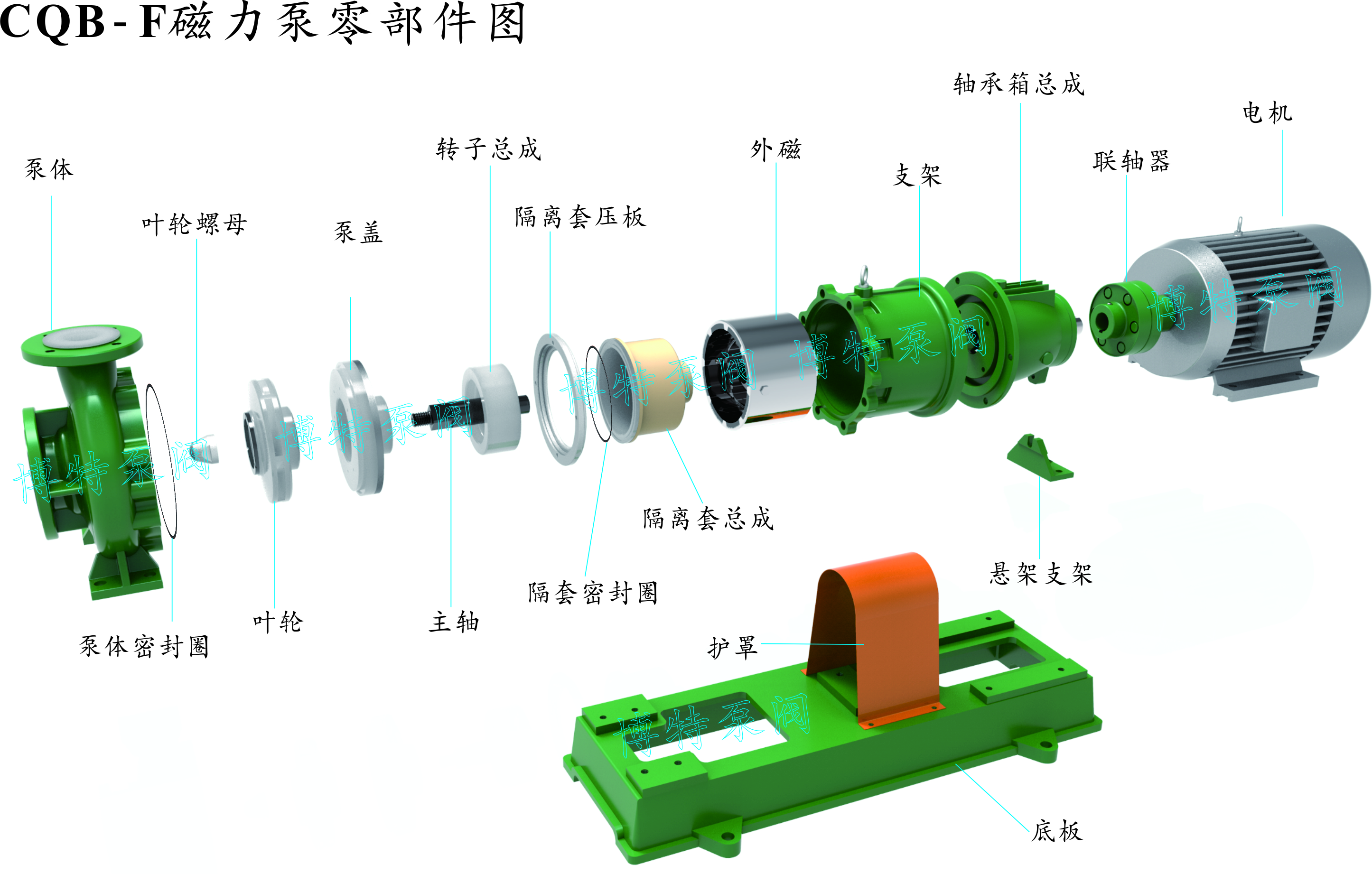 過(guò)流部件采用氟塑料制造,高耐腐蝕性。泵的承重部分為金屬材料,足以承受管道和流體的重量及機(jī)械沖擊。