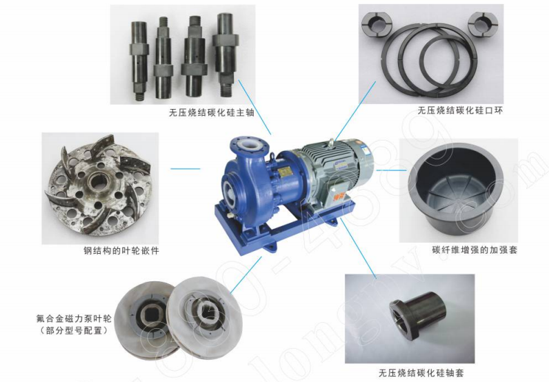 泵軸、軸承及對磨副均采用先進的SSIC制成,可耐各種強酸、強堿及強氧化劑特別對氫氟酸有極佳的耐腐蝕性,牢固的支撐結構確保泵運行平穩。克服了填充四氟材料軸承熱漲冷縮的缺陷,輸送介質范圍進一步擴大,能夠輸送溫度較高、含有少量細小結晶和顆粒的介質。