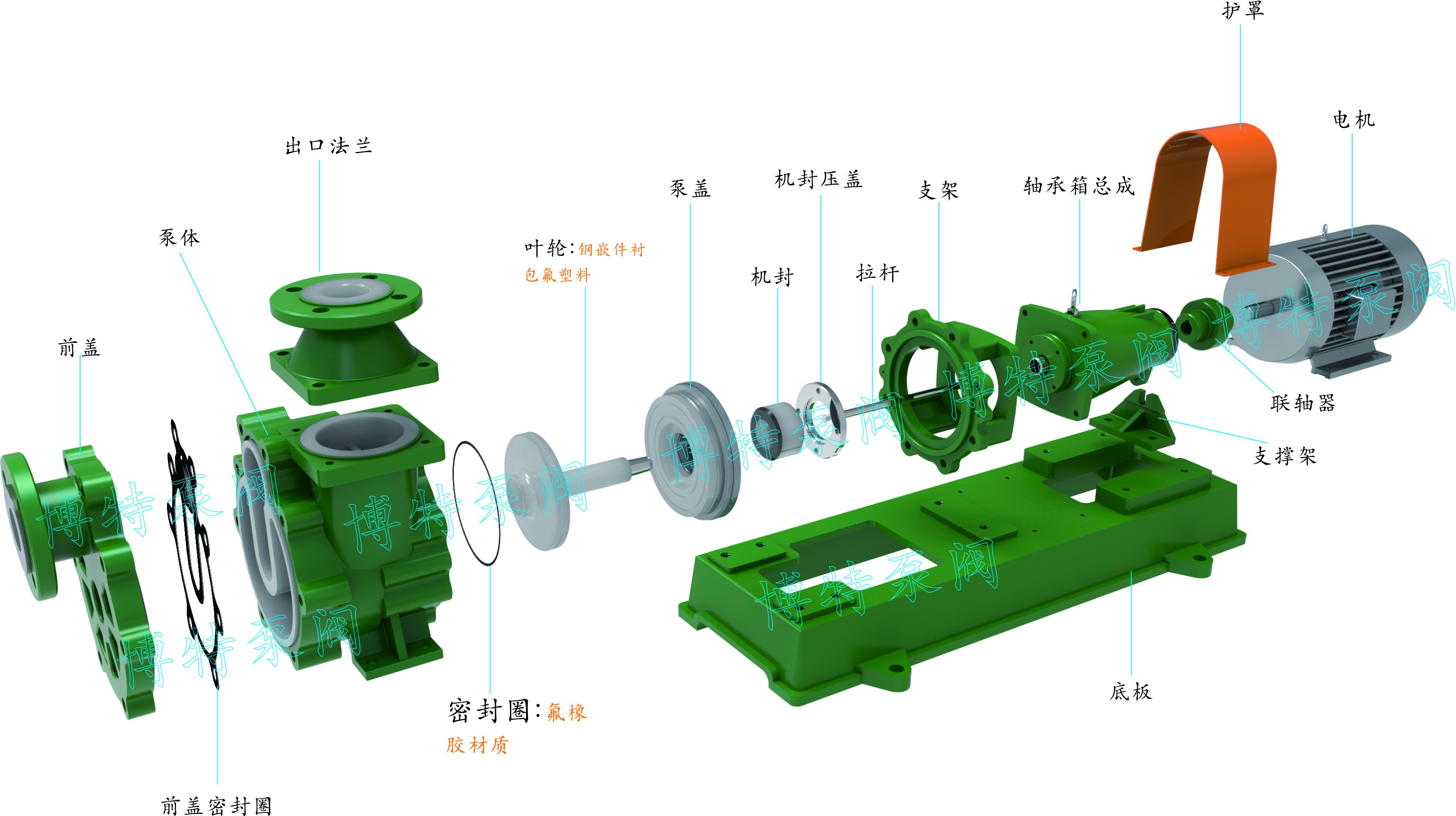 過流部件采用純凈的氟塑料合金制成,配置外裝式波紋管機械密封。