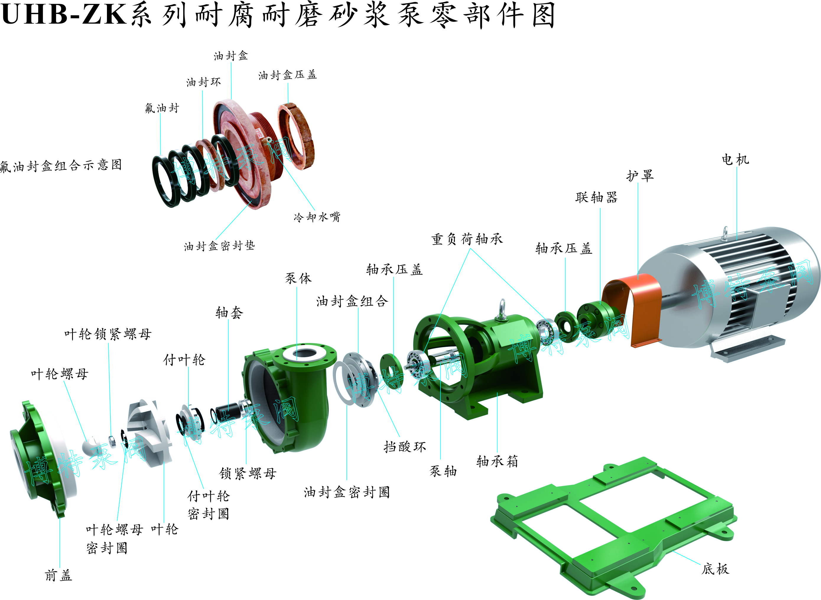 該泵具有耐腐耐磨的優(yōu)良性能,廣泛適用于各種不同的工況,如硫酸磷肥業(yè)(磷酸料漿、含硅膠的氟硅酸、母液等);有色金屬冶煉業(yè)(鋅、鉛、金、銀、銅錳鈷稀土等濕法冶煉的各種酸液、腐蝕性礦漿料漿電解液等);水處理(皮革、電鍍、造紙、紡織、制藥污水等);鋼鐵企業(yè)(酸洗系統(tǒng)、帶雜質(zhì)的污水)等行業(yè),既適用清夜也適用料漿。